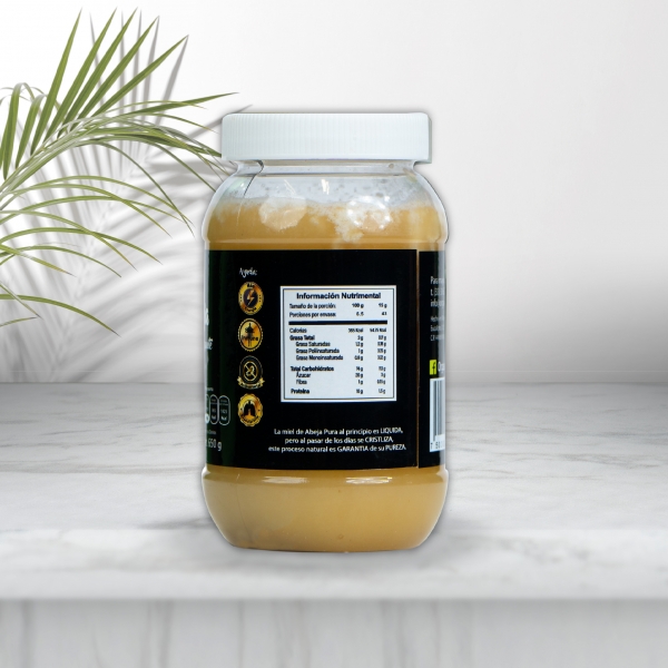- Nuestra miel de abeja es 100% cruda (sin pasteurizar). Recién cosechada, es líquida, pero al pasar de los días se cristaliza, este proceso natural es garantía de su pureza.